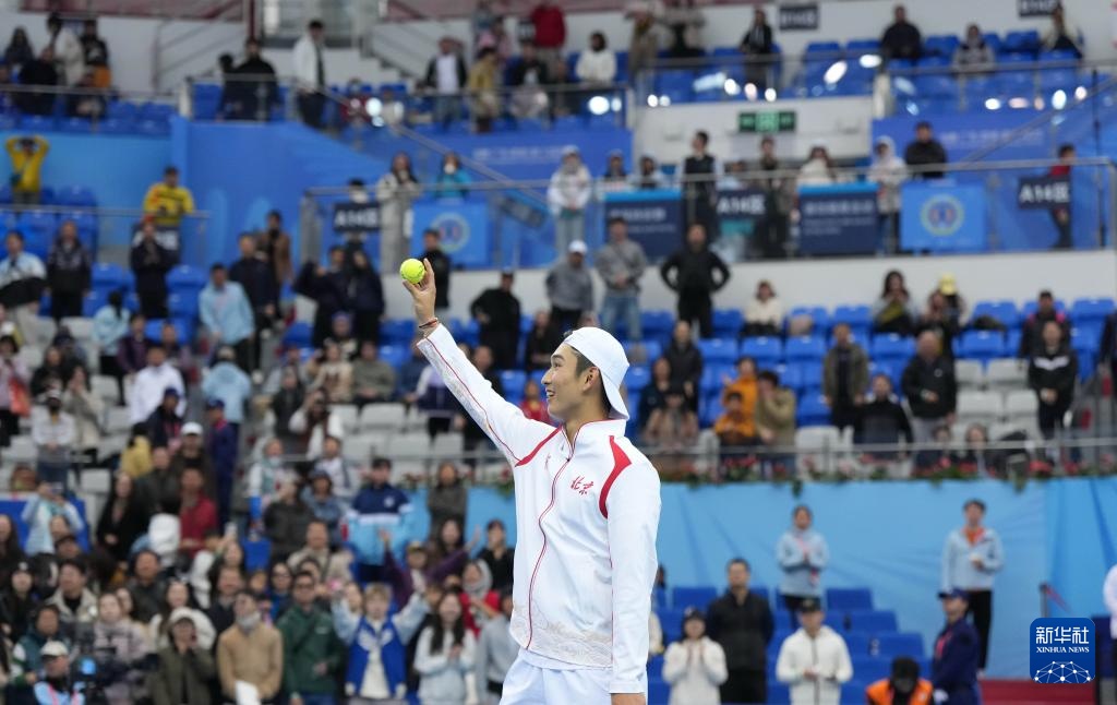 11月19日,北京队球员尚俊成赛后向观众展示签名球。同日,第十五届全运会在广东横琴举行...[查看全文]