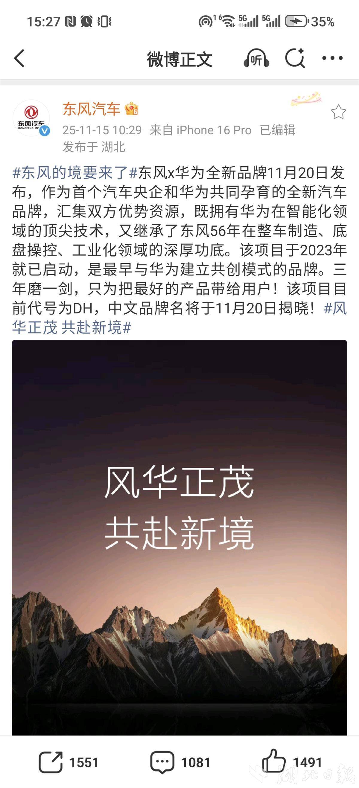 官宣!东风华为又大动作